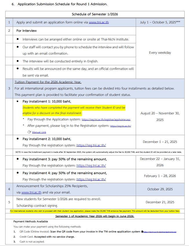 Announcement of Thai-Nichi International College for Academic Year 2026