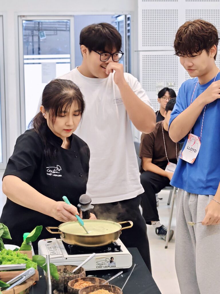 A fun and flavorful start! Students joined a Thai cooking class with Chef Lee Pijika, learning to cook authentic Thai dishes by themselves — delicious and full of smiles! 🥣🍘🍷