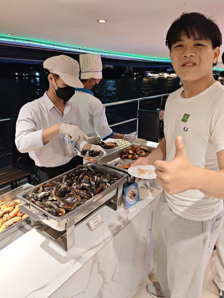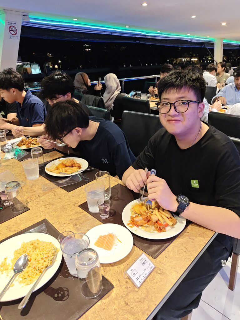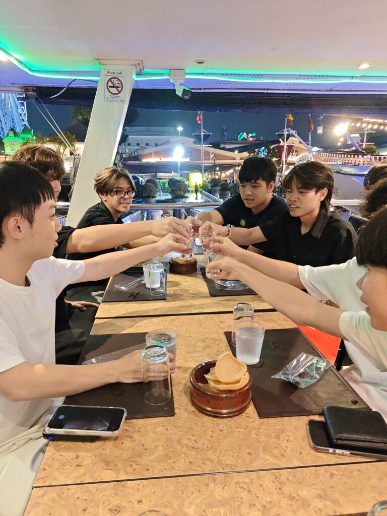 In the afternoon, students visited VT Garment Co., Ltd. to explore Thailand’s Lean and Kaizen systems, gaining real-world industrial insights. The day ended beautifully with a relaxing evening at Asiatique and a delightful dinner cruise on the Chao Phraya River. ⛴️🍰🦐🍲🍪🍇