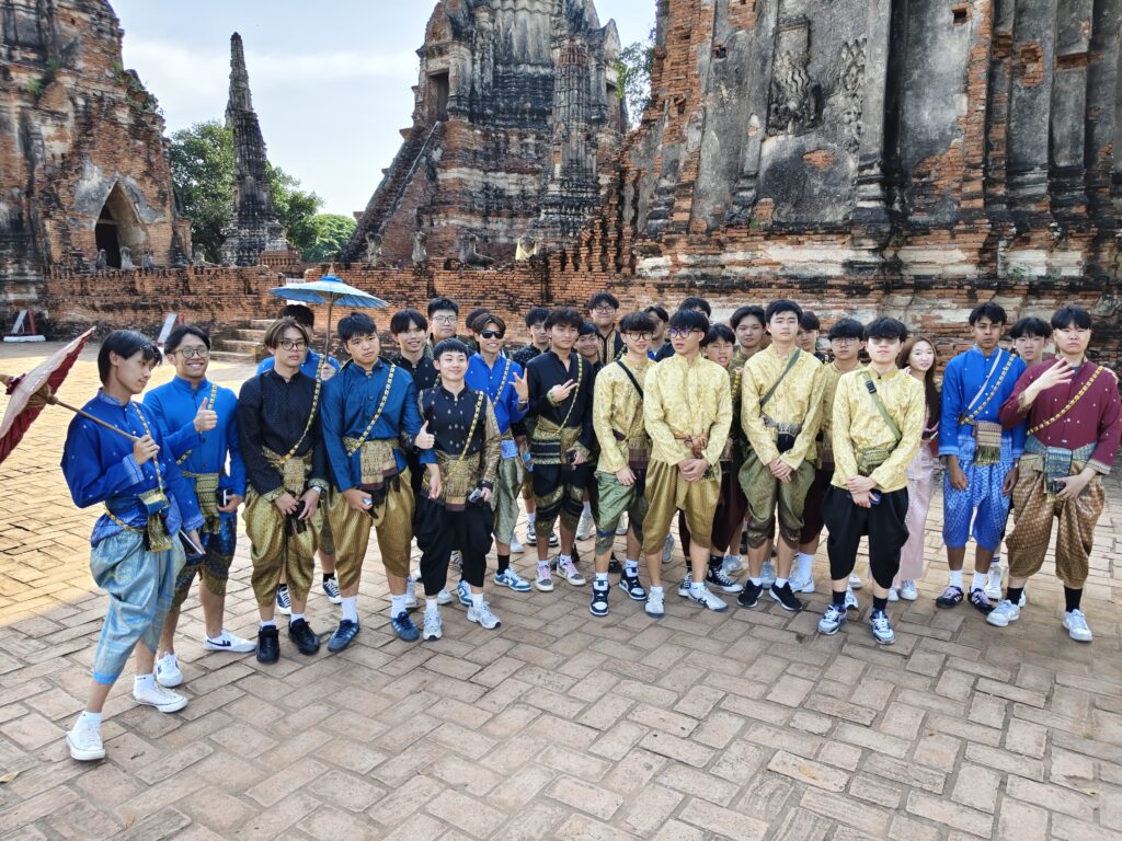 Visiting the ancient temples Wat Maha That and Wat Chaiwatthanaram, dressing up in Thai traditional costumes, and enjoying cool drinks by the river — a day full of smiles and unforgettable memories!